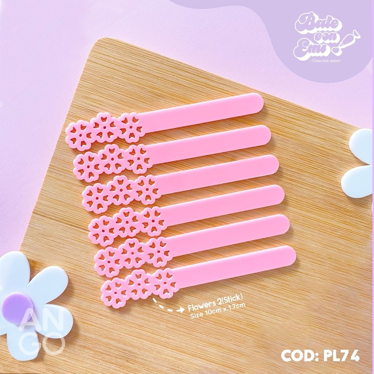 • Palitos Acrílico Flores Rosado – 10 unidades