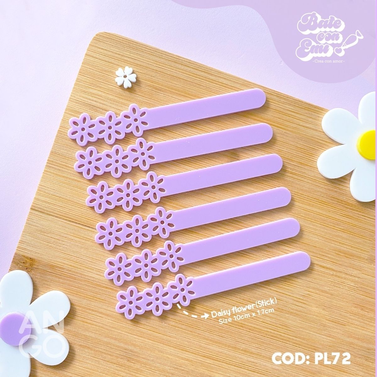 • Palitos Acrílico Flores Lila – 10 unidades