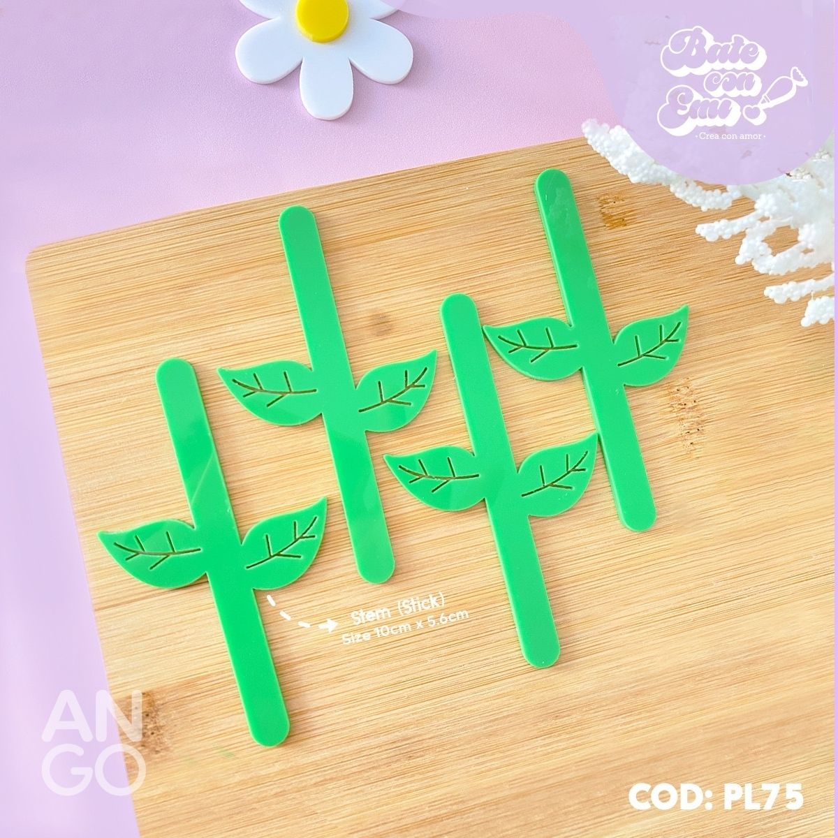 • Palitos Acrílico Hojas Rosa – 10 unidades